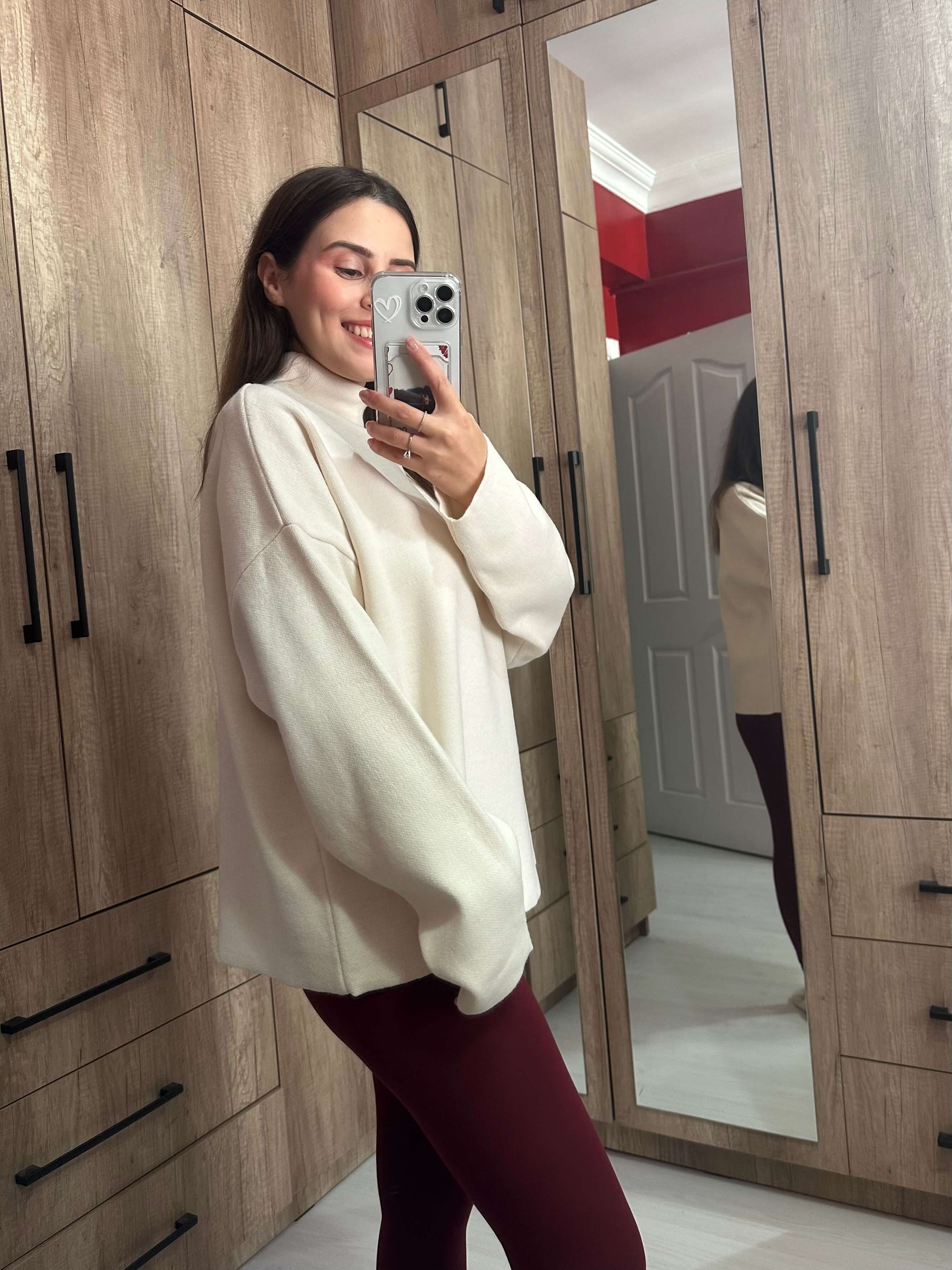 Ürün Kodu: Ün-Kazak-0019 Renk: Ekru Standart bedendir. Model Bilgisi : 160 cm 50 kg TL650.00